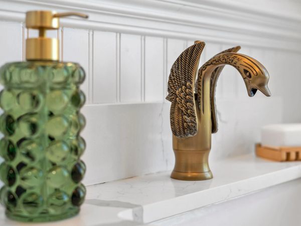 Give your room a design wink and some special magic through moments of levity (like this swan faucet) throughout your home! Showcase your zest for life by displaying the people, places, and things you treasure through wallpaper, art, and decorative items!