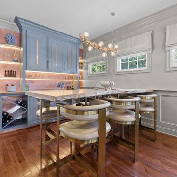 Creating spaces where friends and family can gather is a passion for our design team. We strive to curate meaningful decor that inspires family and friends to gather, interact and make memories. Here we build a cozy breakfast nook complete with a special place for the family's furry baby.